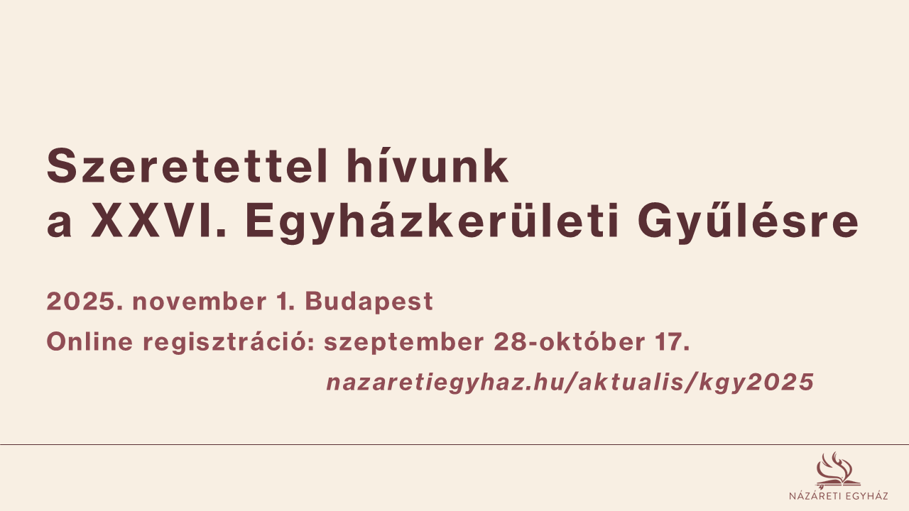 Szeretettel hívunk a XXVI. Egyházkerületi Gyűlésre.